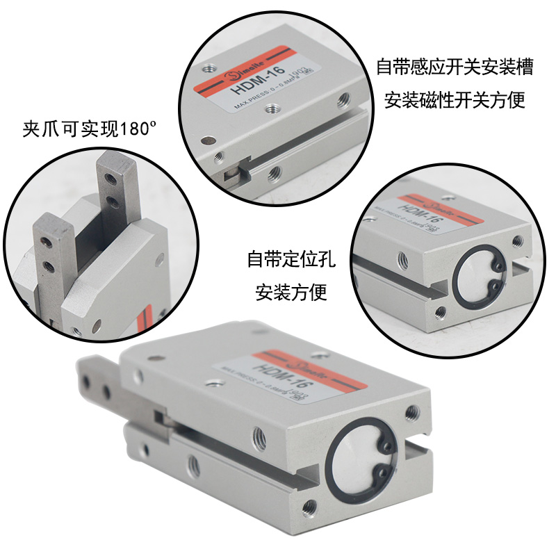2、HDM手指氣缸夾爪可實現(xiàn)180º,該范圍內的都可以夾取搬運;