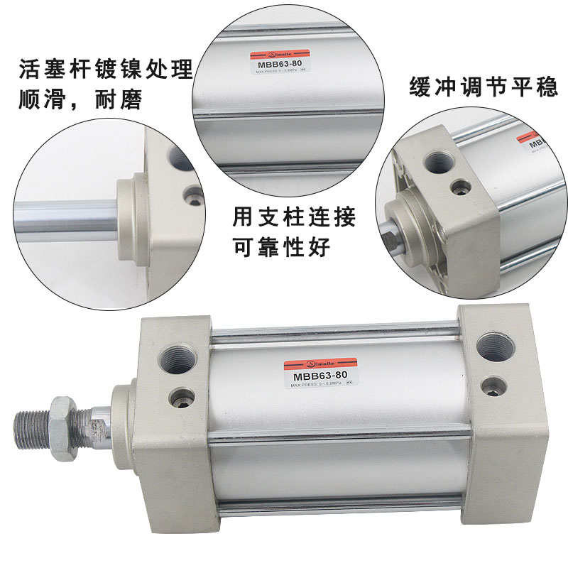 1、MBB系列標(biāo)準(zhǔn)氣缸活塞密封采用異型雙向密封結(jié)構(gòu),尺寸緊湊,有儲(chǔ)油功能;