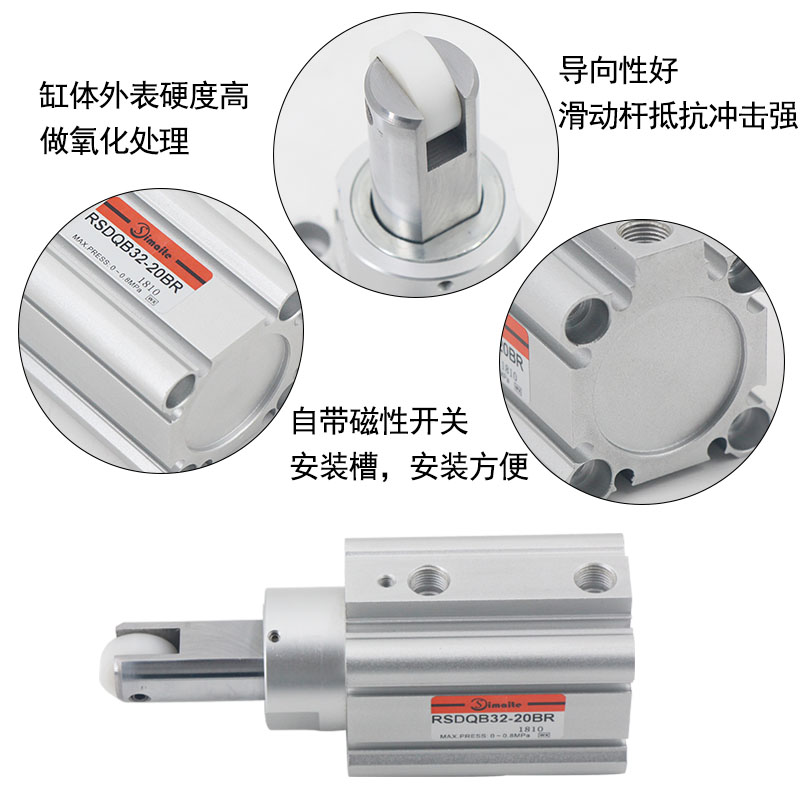 1、RSQ系列阻擋氣缸導(dǎo)向性好,滑動(dòng)桿提供了高度的抗彎曲和導(dǎo)向性;