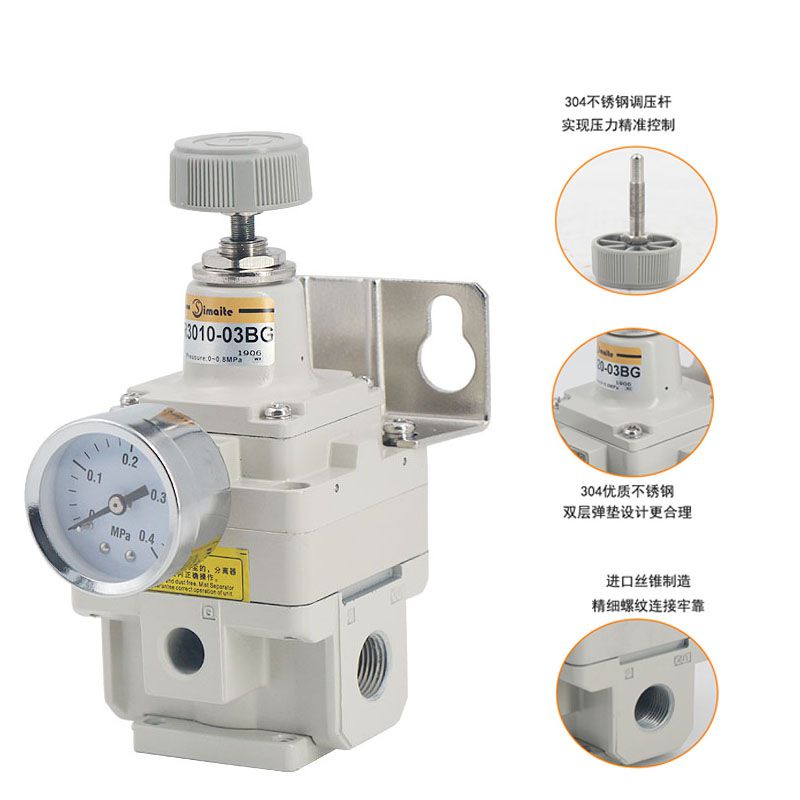 5、精密減壓閥安裝方便。可用托架獨(dú)立安裝或現(xiàn)在的模塊式過(guò)濾組合AFM直接安裝;